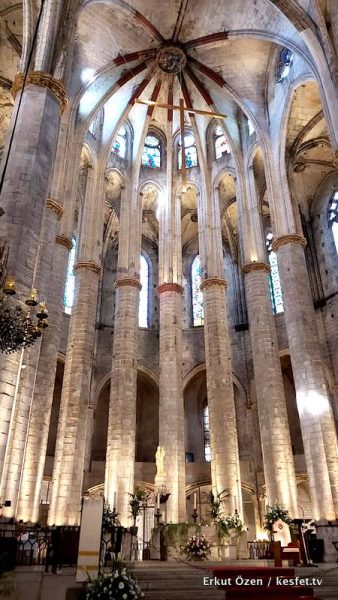 O dönemde Aragon Krallığı altında bulunan La Ribera’da yaşayan halk tarafından yaptırılan bu nedenle La Ribera (deniz kıyısı) olarak isimlendirilmesine rağmen halkın katedrali olarak da adlandırılan Santa Maria del Mar, biribirinden uzaklığı 13 metre olan yüksek ve zarif sütunlar üzerine oturtulmuş eşit yüksekliğe sahip üç adet neften oluşuyor.