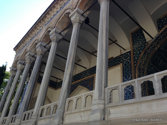 Girişte bulunan revaklar oldukça etkileyici. 14 adet sütundan oluşan mermer revaklar belki de köşke en etkileyici özelliklerinden birini sağlıyor.