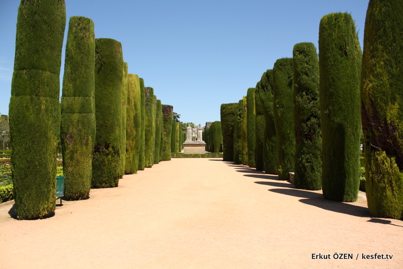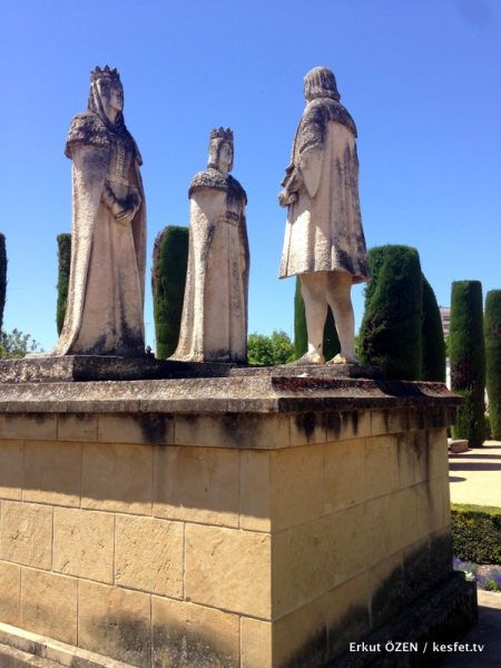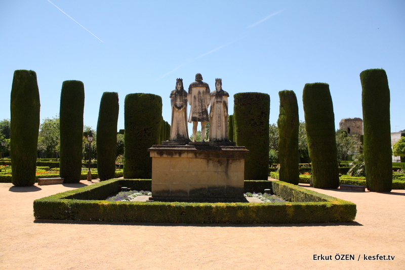 Cordoba Alcazar bahçelerini gezerken çevrede süslenmiş ağaçların açıları ve düzenlemeleri, ziyaretçileri adeta bu noktaya çekiyor. Yani heykeller bahçe düzeninde en önemli alanlardan birine yerleştirilmiş.
