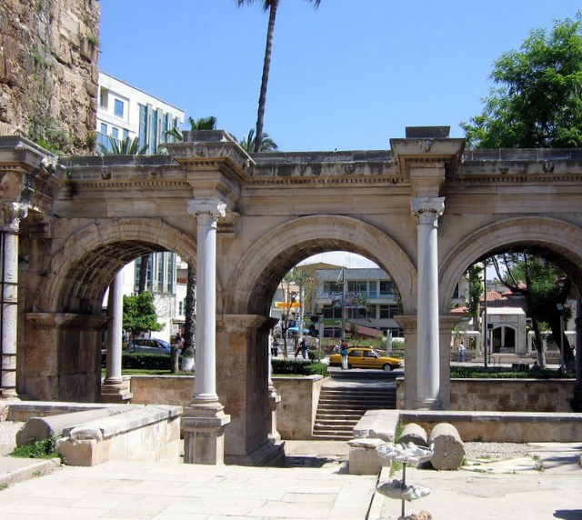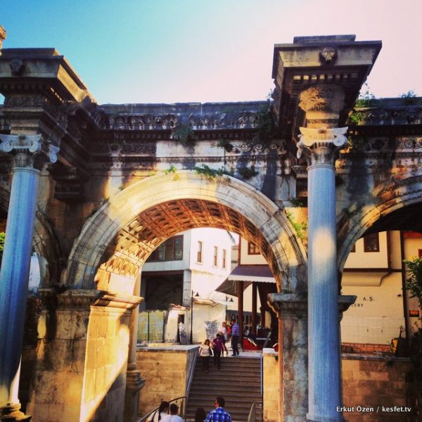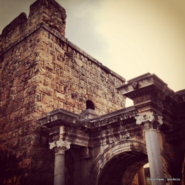 Hadrianus Kapısı eğer Antalya’ya gelmişseniz mutlaka dikkatinizi çekmişti. Günümüzde Antalya Atatürk Caddesi üzerinde yürürken karşınıza çıkan, gerçek anlamda etkileyici ve konumu dolayısıyla büyük tehlike altında olmasına rağmen nasıl olduysa iyi bir şekilde korunmuş olan, kale surlarına bitişik duran üç kemerli görkemli yapıdan bahsediyoruz.