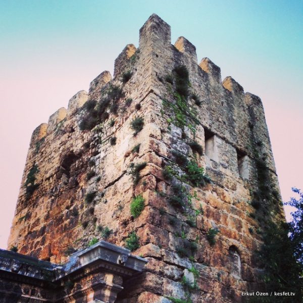 Sağdaki kule, Julia Sancta olarak isimlendirilen Roma dönemine ait bir kule. Sağdaki Selçuklu yapısı olanın ise, alt tarafı antik döneme ait.