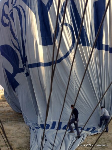 Bu kısa yolculuktan sonra vardığımız balonların kalkış için kullandığı alanda “balon ekibi” sıcak hava ile balonun şişirilmesi ve diğer teknik detaylar ile ilgileniyordu. Teknik hazırlıklar ve balonların şişirilmeleri de birer seremoni adeta. Yani aslında hepsi bu heyecanın ve mistik havanın verildiği gösterinin bir parçası!