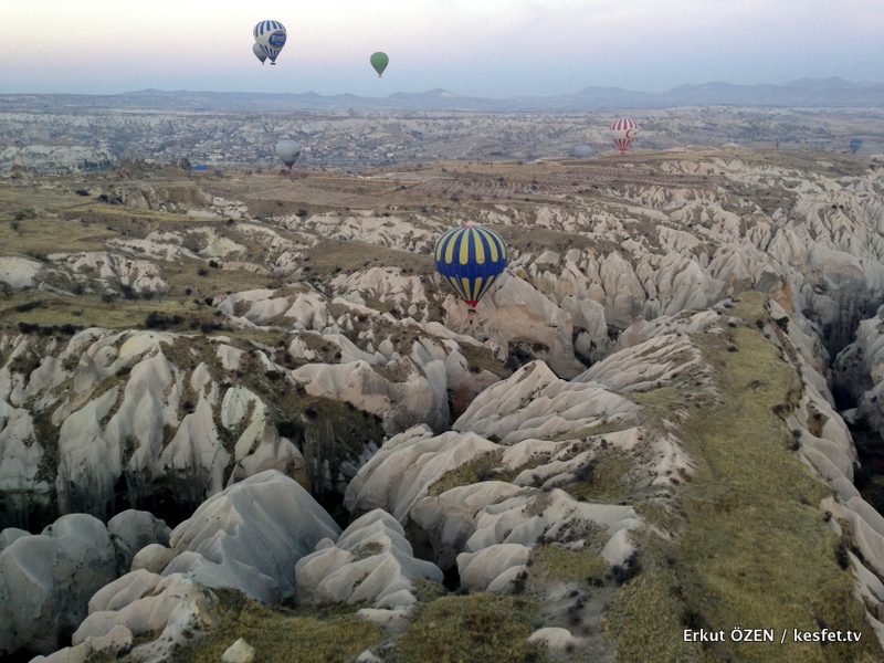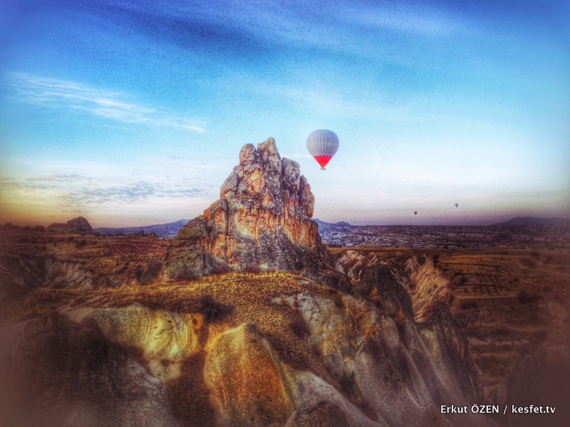 Kapadokya üzerinde balonla uçmak başka bir gezegen üzerinde keşif yolculuğu yapıyormuş hissi veriyor. Uçuş sırasında balon bazen yükselerek görüntünün açısını muhteşem hale getiriyor bazen de bölgenin nefis coğrafyasında bulunan oyuklara, vadilere, kanyonlara inip süzülüyor. Muhteşem bir sabah seremonisi gerçekleşiyor.