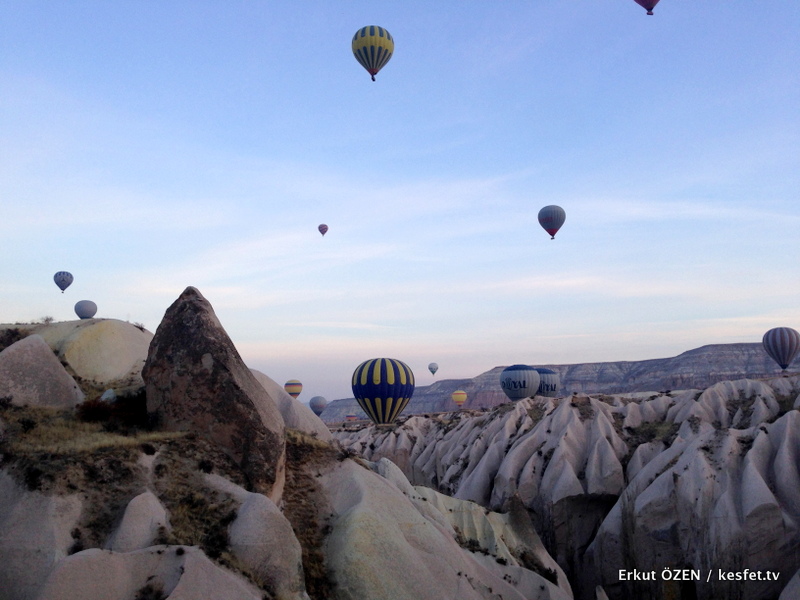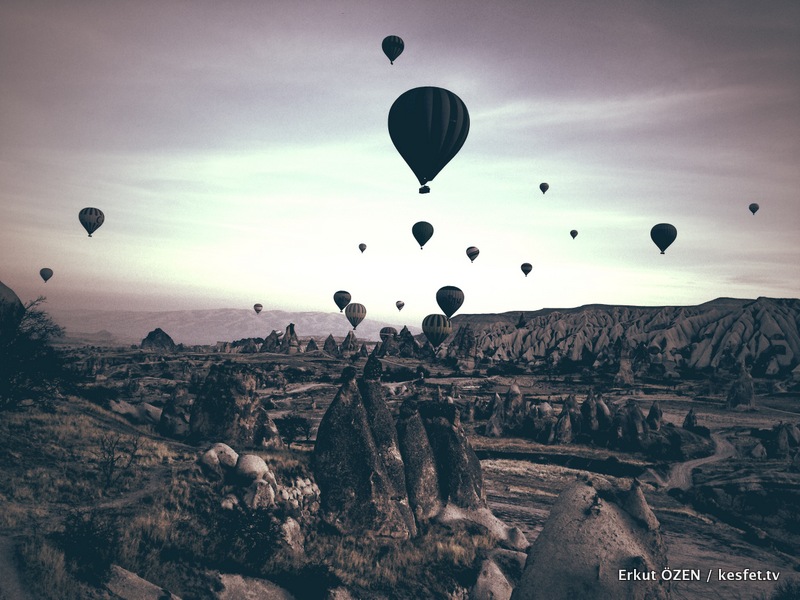Telsiz konuşmalarıyla yönlendirilen sabahın köründeki hava trafiğinin kalabalıklığı öyle güzel manzaralar ve fotoğraf kareleri imkanı veriyor ki, zaten coğrafi özellikleriyle büyüleyici olan Kapadokya bölgesinin cazibesi bir kaç kat daha artıyor.