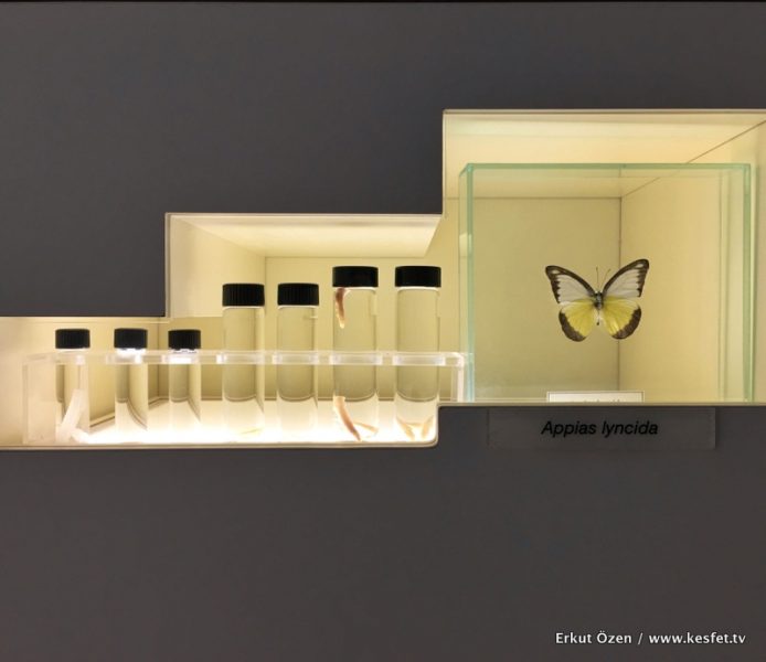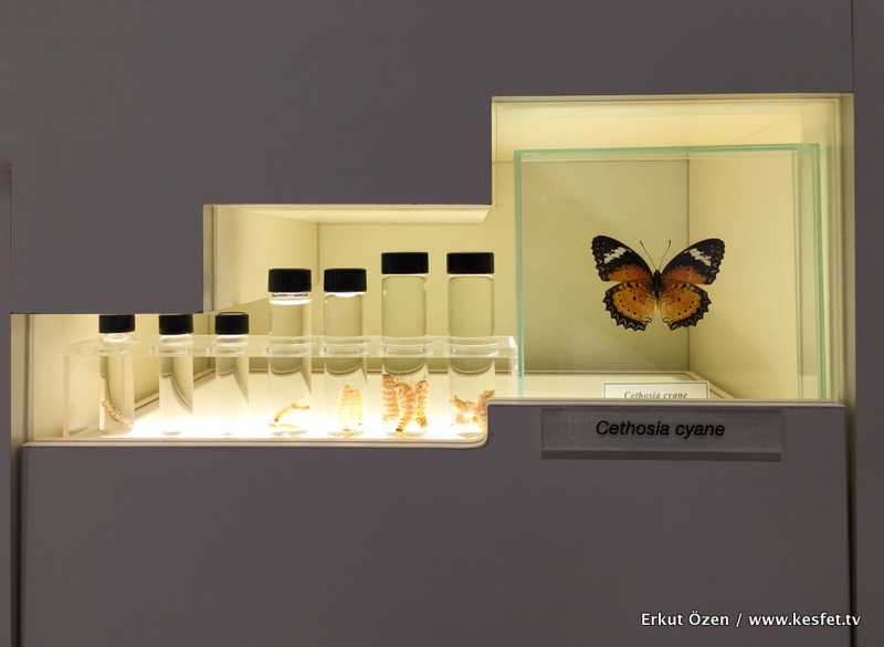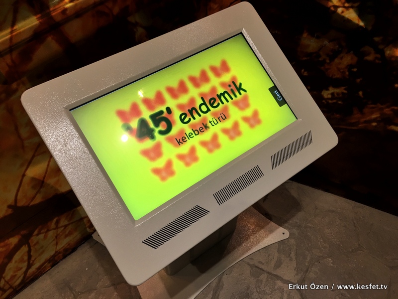 Böcek sinemasından çıkınca dijital kiosklar ve camekanlarla oluşturulmuş bir başka bölüme geçiyorsunuz. Kelebeklerin sınıflandırıldığı alan.