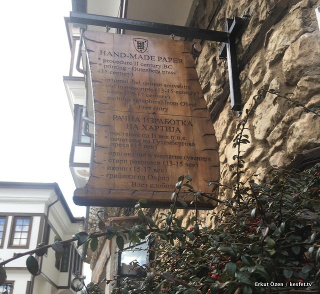 Ohrid eski şehir merkezini gezerken yürüyüş güzergahınızda görmeniz gereken oldukça fazla detay bulunuyor. Bunlardan biri de el yapımı kağıt yapma atölyesi.