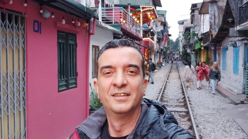 Hanoi’nin kalabalık ve gürültülü hali bu sokağa da yansımış durumda. Oldukça dar olan bir sokak, sadece ortasından geçen demiryolunun raylarına bırakılan bir alan ve kenarında yürünebilen birkaç santimetrelik alanlardan oluşuyor.